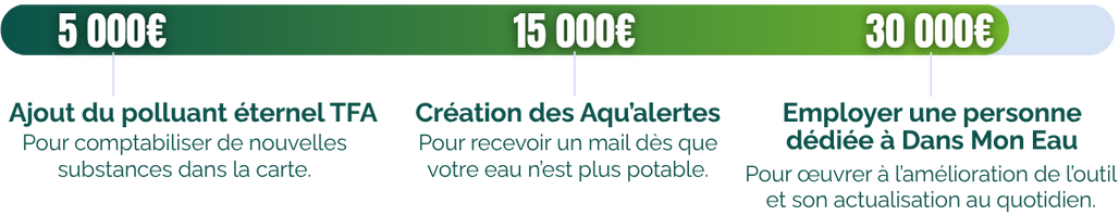 Rendre transparente et accessible l’information sur la pollution de l’eau en France est une mission qui devrait incomber à la puissance publique. Pourtant, ce travail n’est pas réalisé. C’est pourquoi Générations Futures, en collaboration avec Data For Good, travaille depuis des mois sur ce projet ambitieux. Pour faire vivre et développer Dans Mon Eau, un outil qui informe sur les polluants chimiques présents dans l’eau du robinet à votre adresse, 50 000 € sont nécessaires.